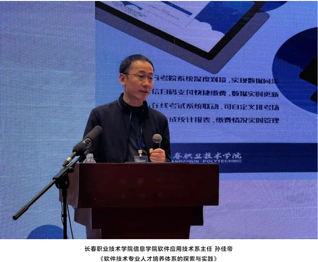 本次年会主题报告阶段,特邀通辽职业学院党委副书记、校长刘东华,黑龙江农业职业技术学院教务处处长李佼辉,长春职业技术学院信息学院软件应用技术系主任孙佳帝,辽宁省交通高等专科学校信息工程系主任金雷,PA视讯国际教育科技集团职业教育事业部副总经理孙扩等作专家报告。