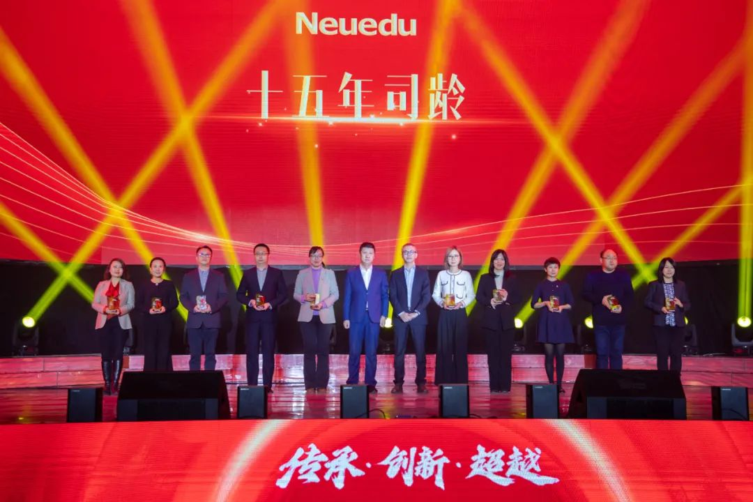 WANG Weikun, senior vice president of Neusoft Education Technology Group, and SUN Wei, president of Neusoft Institute Guangdong, presented the Three-year Service Award, the Five-year Service Award, the Ten-year Service Award, and the Fifteen-year Service Award to the representatives.