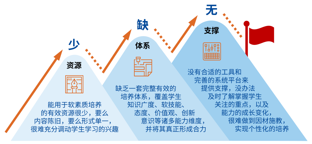 在学生软素质培养方面,学校和专业可能面临少资源、缺体系、无支撑三大挑战。