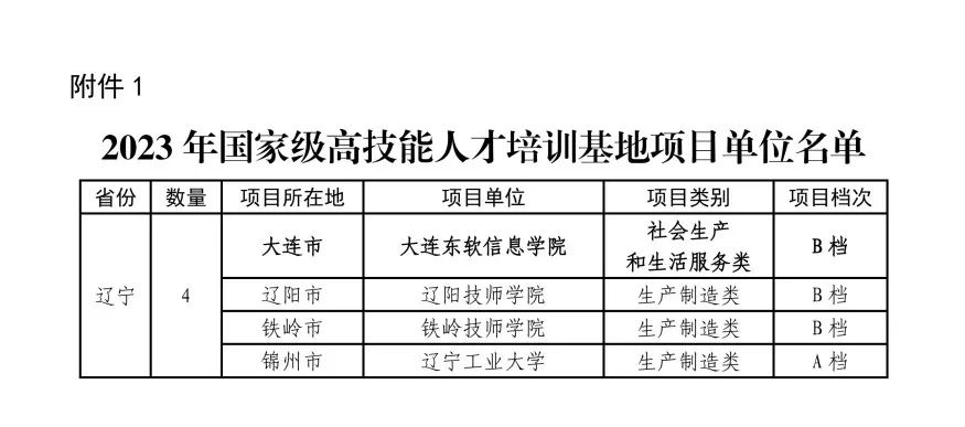 近期,人力资源社会保障部、财政部公布了《2023年国家级高技能人才培训基地和技能大师工作室项目单位备案名单的通知》(人社厅函〔2024〕69号),辽宁省有4家单位获批,大连PA视讯国际信息学院继2020年之后,再次获批国家级高技能人才培训基地。