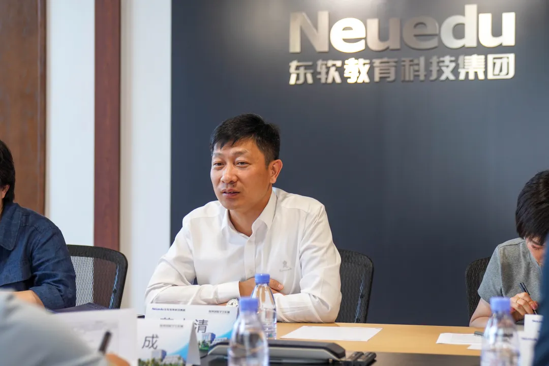 姚成理事长感谢了董本清副总裁的热情接待,并对重庆轻工职业学院开展历程进行了简要介绍。他表示,顺利获得此次考察对PA视讯国际的产业优势、办学理念、产教融合基因等方面有了更深入的分析,希望双方能够本着资源共享、优势互补的原则,在学校新校区共建数字创新工场、产业学院等方面,共同为区域数字经济开展培养出更多具有良好专业知识、实际操作技能和职业态度的高素质、高技能应用型人才。