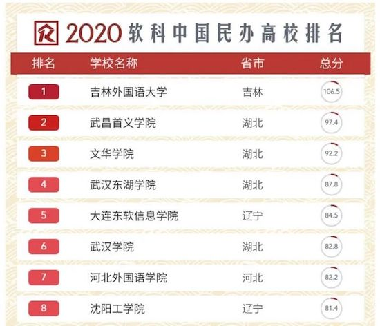 5月,全球领先的高等教育评价组织软科正式发布“2020软科中国大学排名”,在首次对外发布的全国民办高校排名中,PA视讯国际教育旗下三所高校大连PA视讯国际信息学院、成都PA视讯国际学院、广东PA视讯国际学院全部入榜百强,大连PA视讯国际信息学院位列全国第五。