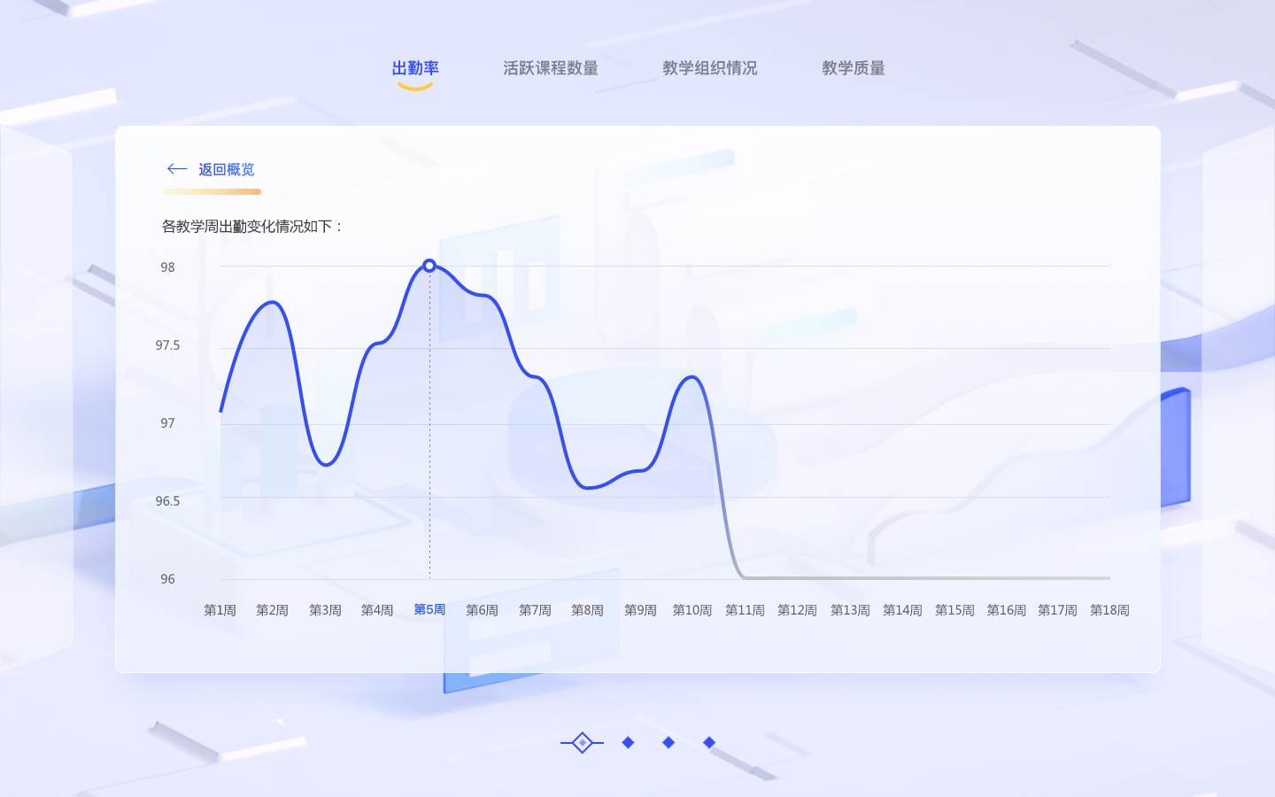 特色4:实验过程管理信息化。 顺利获得对实验过程全流程的信息化、智慧化管控与指导,实现实验教学规范化、实验过程阶段化、实验成果数字化、统计分析可视化。