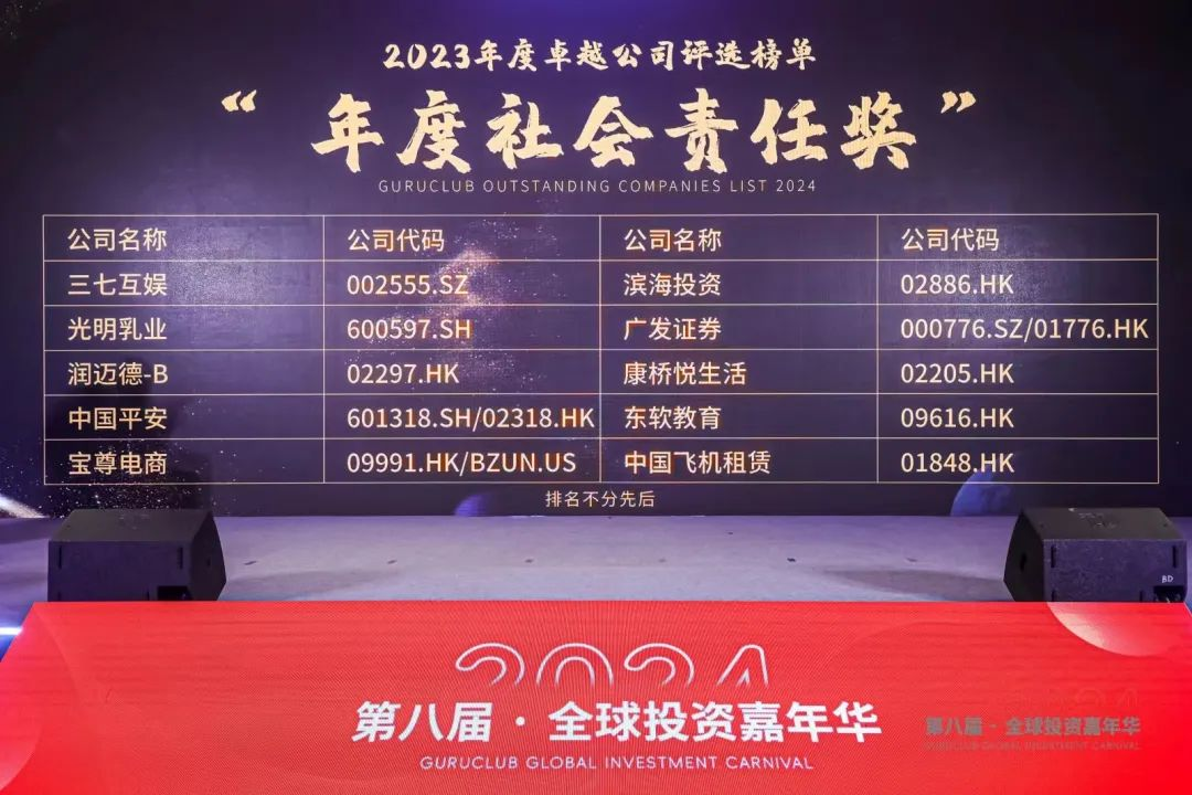 12月20日,第八届“格隆汇·全球投资嘉年华·2024”于深圳开幕。在格隆汇年度卓越公司评选中,PA视讯国际教育(09616.HK) 荣获“年度社会责任奖”奖项。