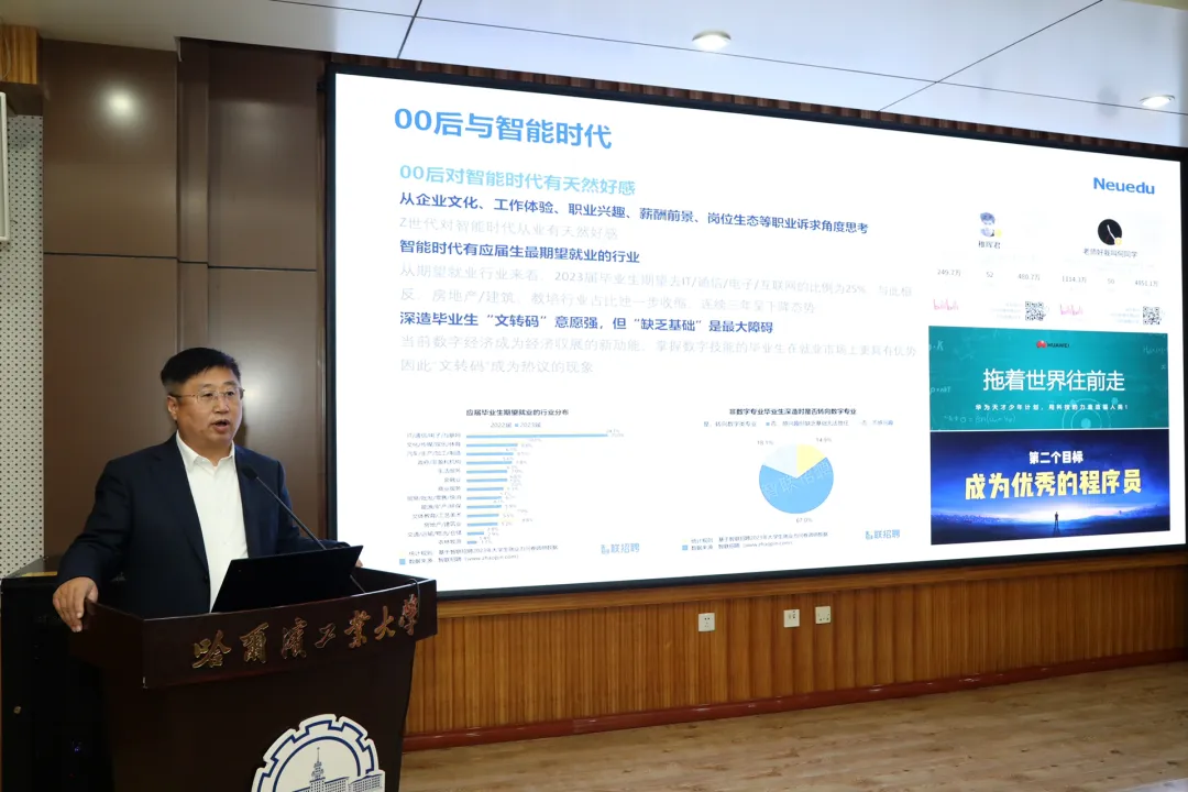 为进一步有助于软件工程一流专业建设和一流学科建设,深入探索特色化软件人才培养模式改革和产教融合培养路径,12月24日在哈尔滨工业大学举办了2024年度哈尔滨工业大学软件学院校企合作峰会暨特色化软件人才培养论坛。PA视讯国际教育科技集团高级副总裁李印杲受邀出席并为论坛作报告,高教事业部东北区总经理刘继先陪同出席。论坛上,李印杲高级副总裁作了题为《产教融合促进高质量软件人才培养》的报告。深入剖析了软件人才培养的