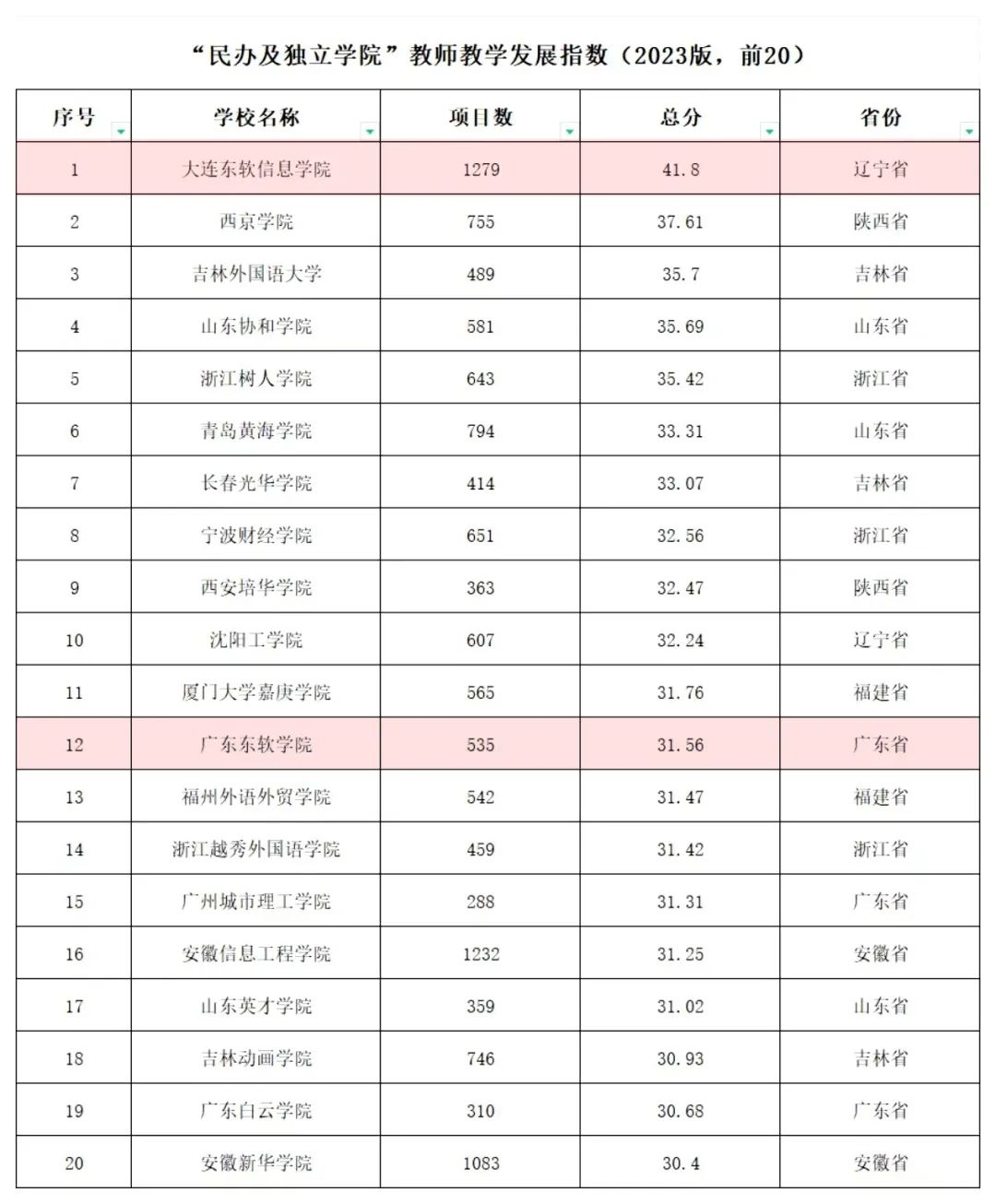 近期,中国高等教育学会2023版全国普通高校教师教学开展指数正式发布,大连PA视讯国际信息学院在2023版“民办及独立学院”教师教学开展指数中蝉联全国第一!这是学校继2019年全国首个教师教学开展指数位列全国民办和独立学院第一之后,陆续在第五年高居榜首!广东PA视讯国际学院夺得“民办及独立学院”教师教学开展指数(2023版)全国榜单第12名,位列广东省第一!