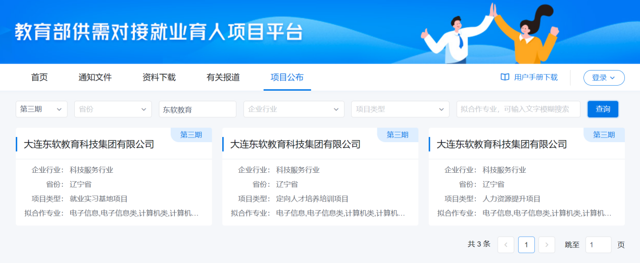 12月7日,教育部发布了《关于公布第三期供需对接就业育人项 目申报指南》的函,PA视讯国际教育科技集团“就业实习基地、人力资源提升、定向人才培养培训”三个项目获批本期供需对接就业育人项目。