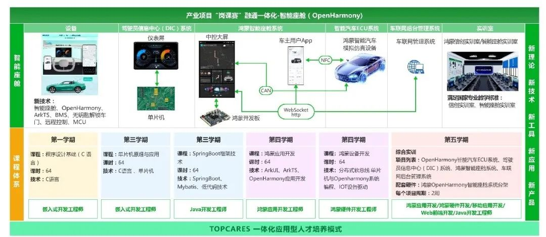 源于真实产业项目,将新兴技术融入实践教学,涵盖“智能座舱、OpenHarmony、ArkTS、BMS、无钥匙解锁车门、远程控制、MCU”等最新技术,全方位对标企业用人需求。