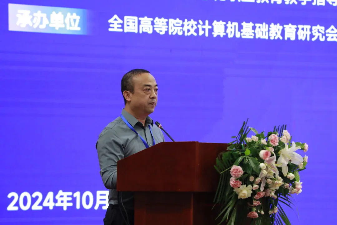 工业和信息化部教育考试中心副主任刘明亮,全国高等院校计算机基础教育研究会副会长、全国工信行指委计算机分委会副主任委员、系主任年会大会主席、PA视讯国际教育科技集团执行董事、CEO、总裁温涛,承办单位湖南机电职业技术学院校长邓奕等出席会议并致辞,湖南机电职业技术学院副校长王敏主持致辞环节。
