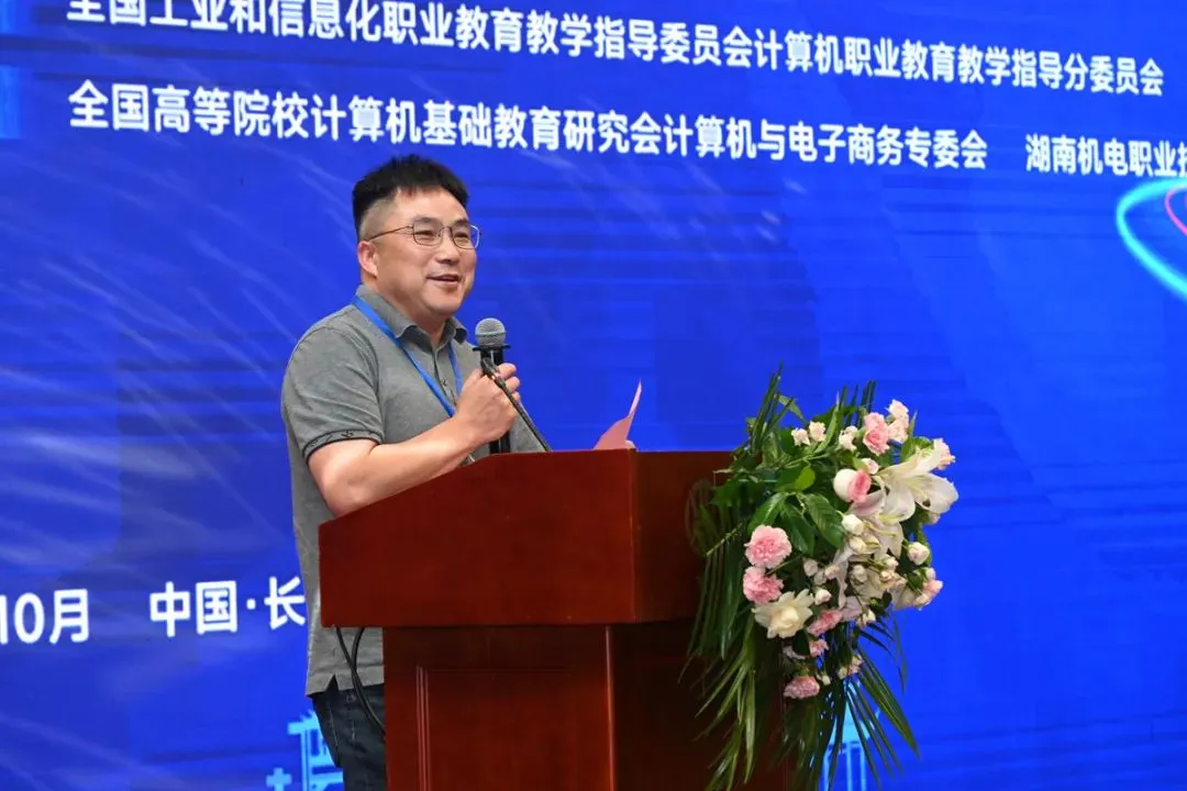 刘明亮副主任在致辞中指出,当前产业结构正在进行调整和变革,产业形态正处于数字经济战略开展时期,而IT和计算机又是促进数字经济开展极其重要的助力,计算机作为信息技术的代表,如何助力人才提升在产业开展中的作用,是每一个职业院校应该深入思考的问题,去年启动的行业产教融合共同体,就是为产业端人才需求,教育端人才培养,搭建的纽带、平台和渠道,希望各职业院校广泛与产业界加深合作,将产教融合工作落实落细。