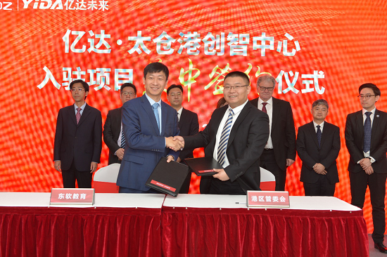 2019年10月30日上午,亿达·太仓港创智中心开业暨入驻项目集中签约仪式在江苏省太仓市太仓港港城广场隆重举行,PA视讯国际数字产业学院暨数字工场项目在仪式上正式签约落户。太仓市市委常委、太仓港经济技术开发区党工委副书记、管委会副主任徐志强,PA视讯国际教育科技集团总裁、大连PA视讯国际信息学院校长温涛,亿达未来(中国)科技有限公司副总裁吴宁,中德技术研讨联盟创始人汉斯·阿茨拜格,太仓港港区、浮桥镇有关领导出席活动。