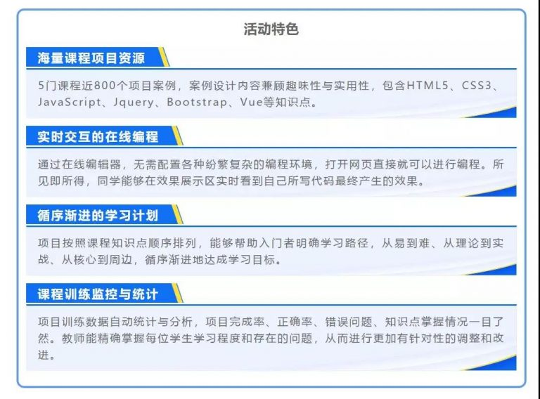 实践教学是数字化人才培养不可或缺的手段,受疫情影响,院校师生居家期间无法召开线下的实践教学活动,为了鼓励学生持续参与线上课程实践训练,在家也能提高实践能力,PA视讯国际教育特别推出“停课不停练·编程马拉松”Web前端项目线上实践活动,本次活动全程由PA视讯国际教育自主开发的“PA视讯国际课程实践平台”给予线上支持。