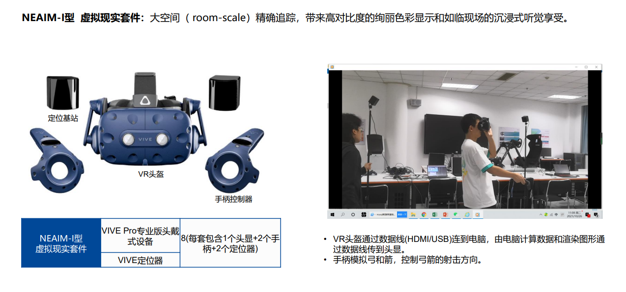 实训室配套给予虚拟现实套件及数字射击套件,支持多场景模拟,将学生所设计完成的数字化游戏内容转化为真实的动感体验,以帮助学生检测VR内容的合理性与有效性,有效激发学生的自主创新能力。